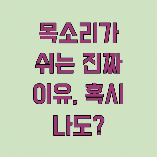 목소리가 쉬는 주된 이유는 과도한 목 사용, 건조한 환경, 질병, 잘못된 발성 습관 등이에요. 회복을 위해서는 목소리 사용을 줄이고, 충분한 수분 섭취와 실내 습도 유지가 필수적입니다.