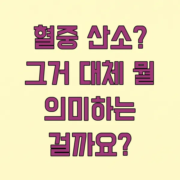 '혈중 산소 포화도'라고도 하는데, 이게 뭐냐면 우리 피 속에 산소가 얼마나 녹아있는지 백분율로 나타낸 거예요. 산소는 폐에서 피로 옮겨져서 온몸 구석구석 세포들에게 에너지를 만들어주라고 전달되는 역할을 하거든요. 그러니까 이 혈중 산소 수치가 높다는 건, 우리 몸이 산소를 잘 받고 있다는 뜻이고, 반대로 낮으면 산소가 부족해서 몸이 제대로 작동하기 어렵다는 신호라고 볼 수 있죠.